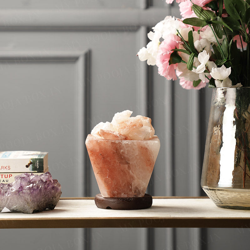 This appealing sphere of the Himalayan salt lamp has been handcrafted to depict a hawan kund that is holding Himalayan rock salts. It is a beautiful alternative to nature without any noise and harmful ozone. This lamp can be used in the whole house- near computers, around smokers and televisions. Use this lamp in offices to relieve from sluggishness and in waiting rooms to create a calm atmosphere.