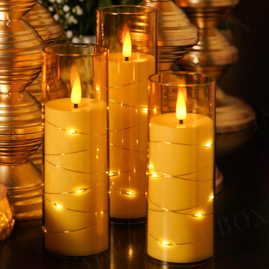 Enhance your space with this set of three Acrylic Glass String Lights featuring warm yellow LED candles. Designed for ambiance, these lights offer a soft, comforting glow ideal for parties, decor, or relaxation. The included remote allows effortless control over brightness and lighting modes, providing convenience and tailored atmosphere settings. Durable acrylic construction ensures longevity while maintaining an elegant appearance. Perfect for indoor use, these string lights combine style and functionality with expert precision.