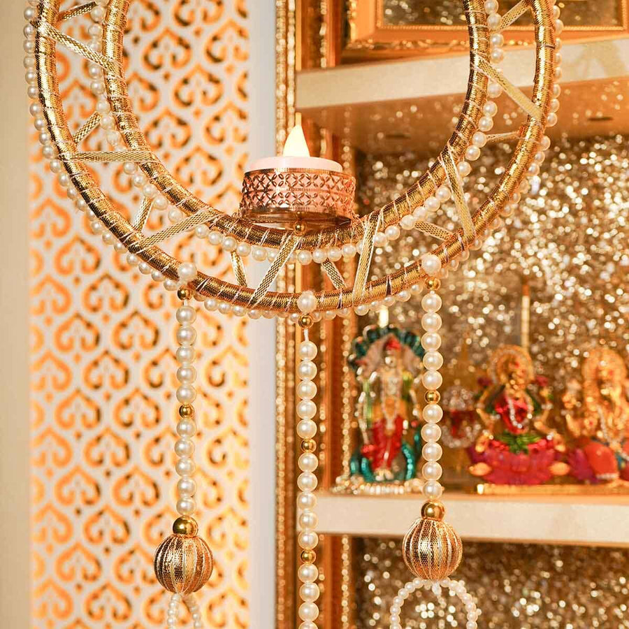 Elevate your spiritual décor with this Beautiful Radha Krishna Hanging T-light. Expertly crafted to capture the divine grace of Radha and Krishna, it casts a warm, serene glow, perfect for creating an ambiance of peace and devotion. Designed for elegant hanging, this T-light blends traditional symbolism with refined aesthetics, making it a graceful addition to any prayer space or meditation corner.