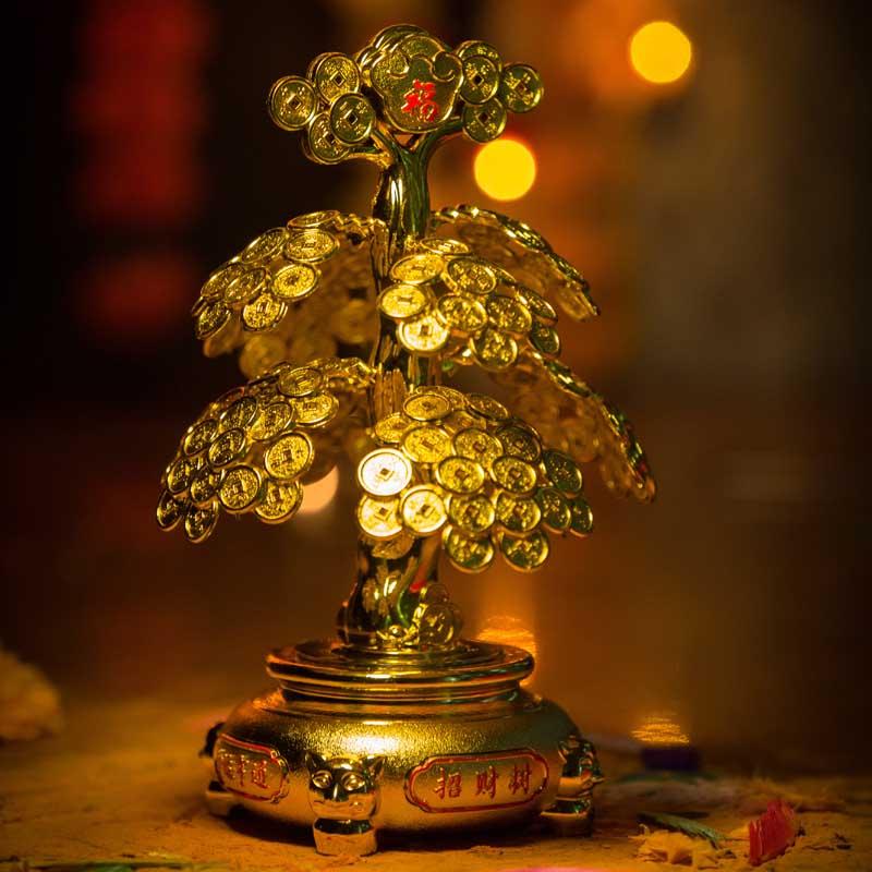 Feng Shui Lucky Bonsai Money Coin Tree with Light for Prosperity