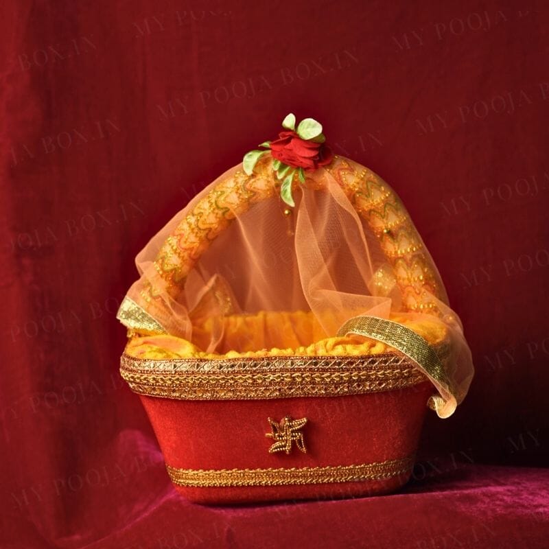 Indulge in luxurious travel with our Laddu Gopal Daily Travel Basket. Crafted with premium materials, this basket provides secure and stylish transport for your beloved Laddu Gopal deity. Perfect for daily outings, it promises to elevate your travel experience. Experience divine elegance with every journey.