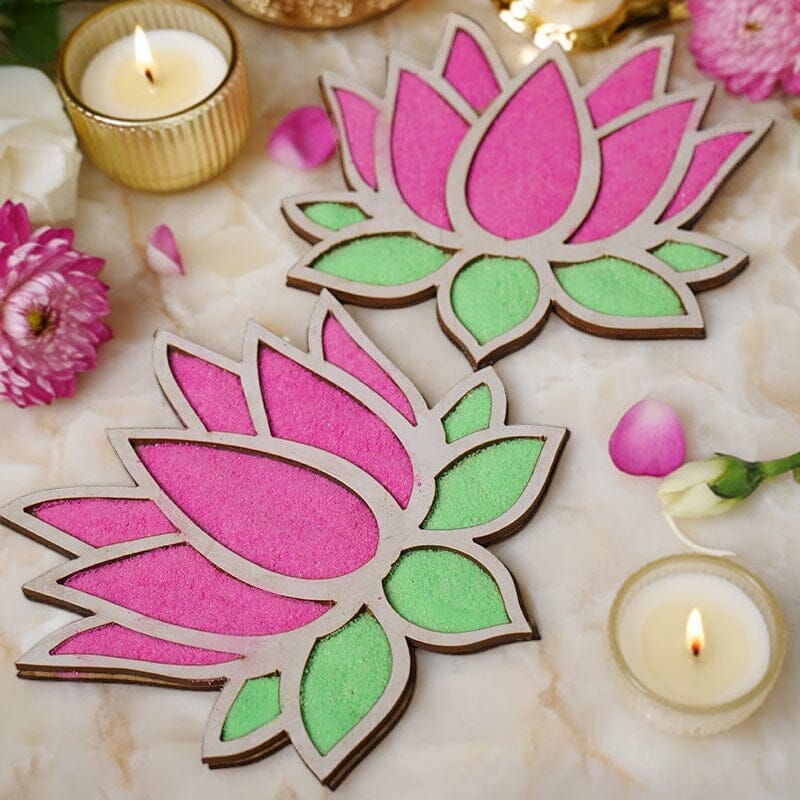 Expertly create beautiful and intricate rangoli designs with our Lotus Pattern Stencil. Made with durable material and precision cut, our stencils are easy to use and produce consistent results. Perfect for special occasions or everyday use, this set includes two stencils measuring 4 inches each.