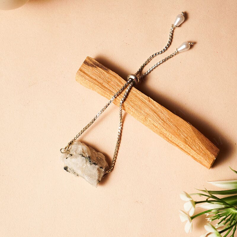 Associated with the Sacral Chakra, the Moonstone is the birthstone of the zodiac Cancer and one of the precious gemstones that symbolize fertility. This raw crystal of Moonstone is available in grey, white, peach, rainbow, blue, cat eye, and many more colors and is handcrafted into a beautiful and elegant bracelet. Features This is not just a great healer but also a powerful stone that helps you regain inner balance Shields you from the mishaps, accidents, and other evil energies Treats the pain related to mensuration, endometriosis, and menopause