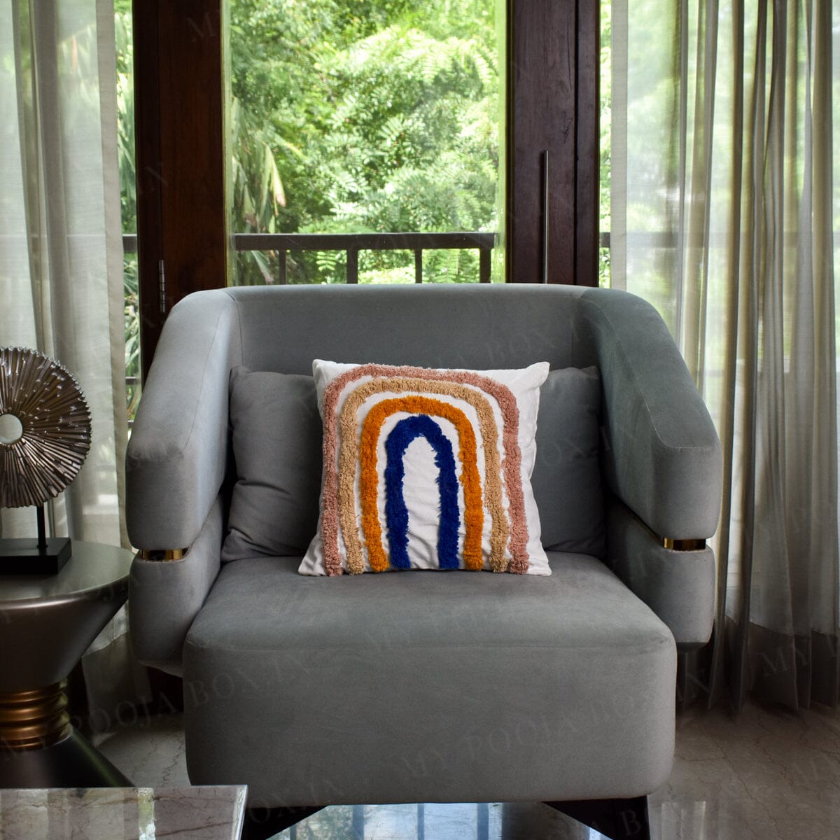 Introduce a splash of vibrant color into your home decor with our Multi Rainbow Pattern Cushion Cover. This lively piece features a bold and eye-catching rainbow pattern that will instantly brighten up any room. Made with high-quality materials, it is both stylish and durable. Perfect for adding a touch of personality to your living space.