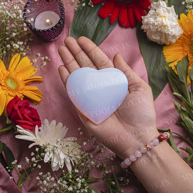 Used to treat not just the chronic pain all over the body, Gua Sha is mainly used to get a smooth-edged glowing and healthy skin with gentle strokes over the surface in the right direction. And to keep your skin healthy too, we have brought you a meticulously designed Gua Sha which is made from the Opal, the “Queen of Gems”, and carved into a beautiful shape of the heart. How to use Gua Sha: Apply 2-3 drops of oil or face serum Beginning from the center of the face, under the cheekbones and eyes, press the tool outwards and upwards.