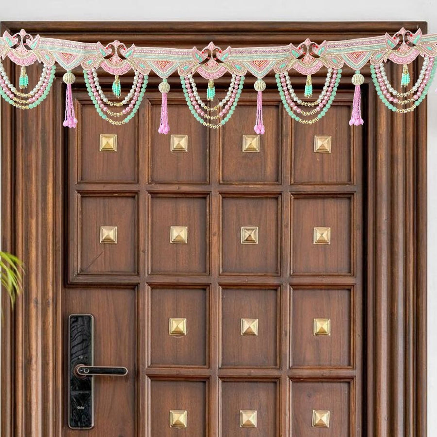 Enhance your home’s entrance with this elegant Pink Blue Festive Door Hanging Toran. Crafted to bring a harmonious blend of vibrant pink and soothing blue hues, it adds a refined festive charm to any doorway. Perfect for celebrations, it invites positive energy and warmth while complementing diverse décor styles with its tasteful design.
