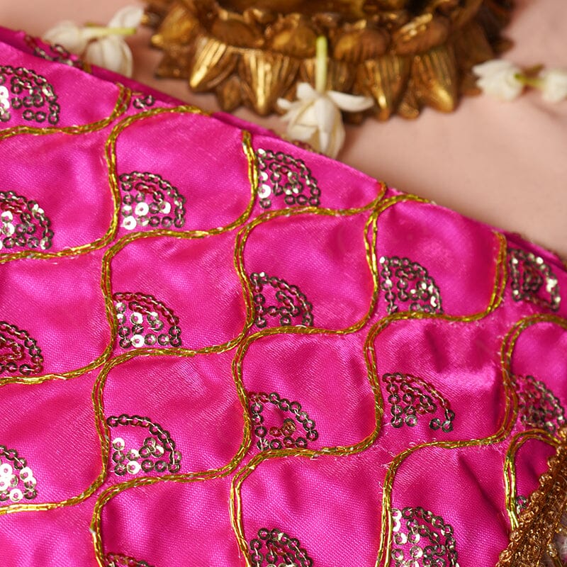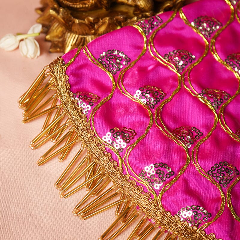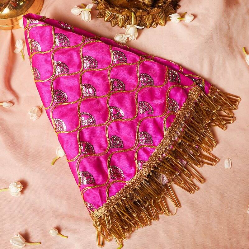The Royal Rani Red Thali Cover adds a touch of class to any dining table. This 100% cotton cover is hand crafted with intricate stitching and is designed to last. Its vibrant color will bring a perfect touch to any dining room.